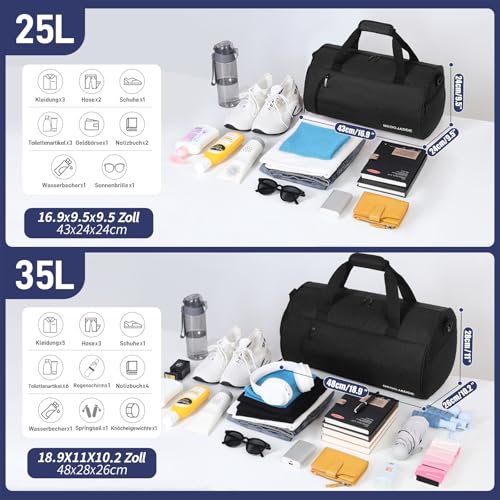 Die BECOJADDE Sporttasche ist die perfekte Begleiterin für alle Aktivitäten. Mit einem großzügigen 25L Volumen bietet diese Reisetasche genug Platz für Ihre Sportutensilien, Kleidung und mehr. Ob beim Fitness, Schwimmen oder auf Reisen – diese Tasche ist Ihr zuverlässiger Partner.