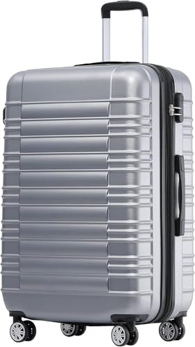 BEIBYE Zwillingsrollen Reisekoffer Koffer Trolleys Hartschale M-L-XL-Set (Silber, L)