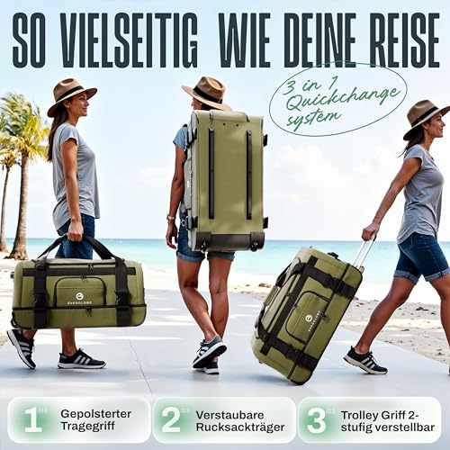 Die EVERGLOBE Reisetasche mit Rollen ist die perfekte Lösung für Reisende, die einen vielseitigen und funktionalen Begleiter suchen. Mit einem beeindruckenden Volumen von 90 Litern bietet diese Tasche genügend Platz für all Ihre Reiseutensilien, egal ob bei einem kurzen Wochenendtrip oder einem längeren Aufenthalt.