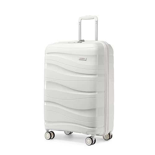 KONO Handgepäckkoffer 55cm Leicht Reisekoffer aus Polypropylen Hartschale Koffer mit 4 Rollen und TSA Schloss, 55x40x20cm (Creme Weiß)