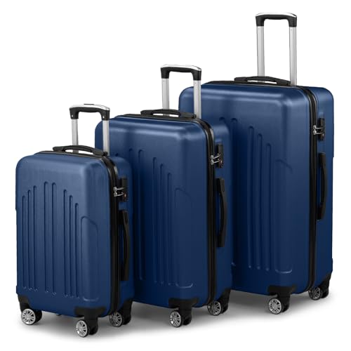 LALAHO Kofferset 3 teilig Hartschale, Reisekoffer mit Rollen Groß, Koffer Set 3 Stück aus ABS+PC, Handgepäck, Hartschalenkoffer Set, Navyblau