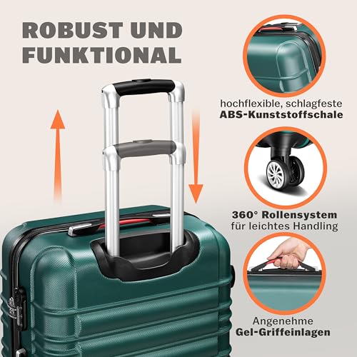 MONZANA® Koffer Kofferset 4er Hartschalen S-M-L-XL Gel-Griffe Zwillingsrollen ABS Hardcase Schloss Füße Trolley Rollkoffer Reisekoffer Grün