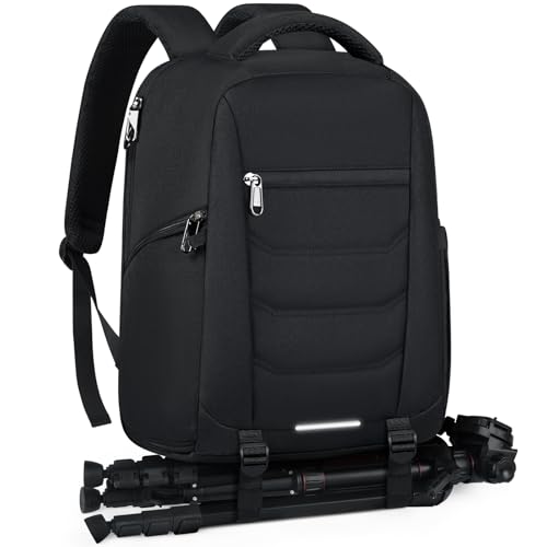 RAINSMORE Kamerarucksack Groß – Kameratasche Spiegelreflex für Fotografen, kamerarucksack mit 14 Zoll Laptopfach, Kamera Rucksack Kameratasche Groß kompatibel mit Nikon Canon Sony Schwarz