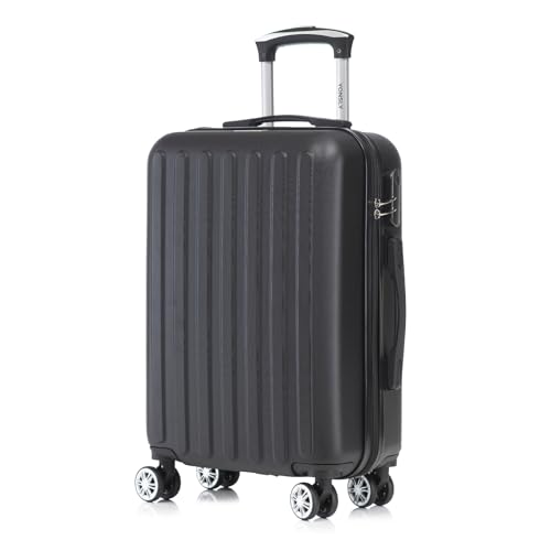 yonsly Koffer Suitcase, Trolley Reisekoffer Set, Rollkoffer Handgepäck, Kabinenkoffer Hartschalenreisekoffer mit 4 Rollen 360°, Zahlenschloss, Weicher Gummigriff (M, Schwarz)